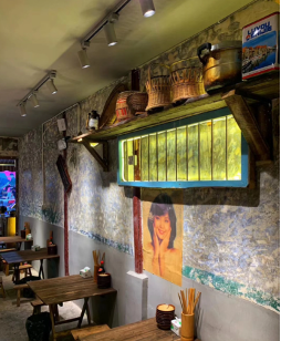 还原80年代老成都街区场景,使用收银台的老式秤和算盘、旧时报纸糊墙、搪瓷称盘装菜等复古元素强化沉浸感。